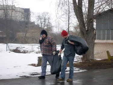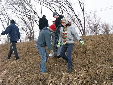 | W sobotę 18 marca 2006 spotkaliśmy się na Bulwarze Piłsudskiego, by pozbierać wszystko, co zaczął odkrywać topniejący śnieg. Trzeba przyznać, że jak na dość mało uczęszczaną okolicę miasta 'skarbów' było sporo. Pytanie, czy przyczyną tego jest niechlujstwo odwiedzających Bulwar, czy brak na nim koszy na śmieci. Wygląda na to, że dwa kontenery ustawione po drugiej stronie ulicy nie spełniają swojej roli. |