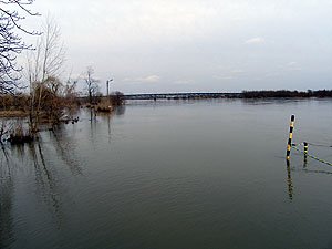 | Godz. 15.30. Bulwar jeszcze pod wodą, ale powoli wyłania się. | Godz. 15.30. Widok na most i .... |