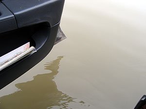 | Mieliśmy nadzieję, że dzisiaj Bulwar będzie ponad wodą. | Sprawdzamy od tyłu ... też nie wejdziemy :( |