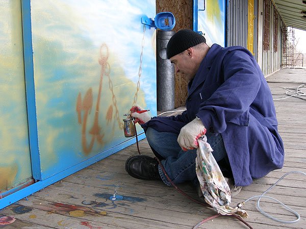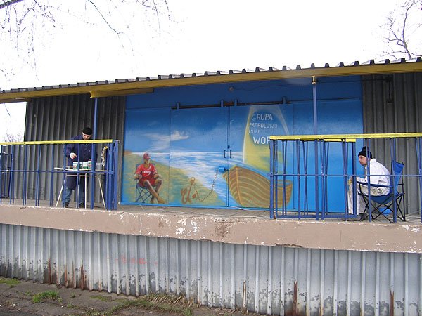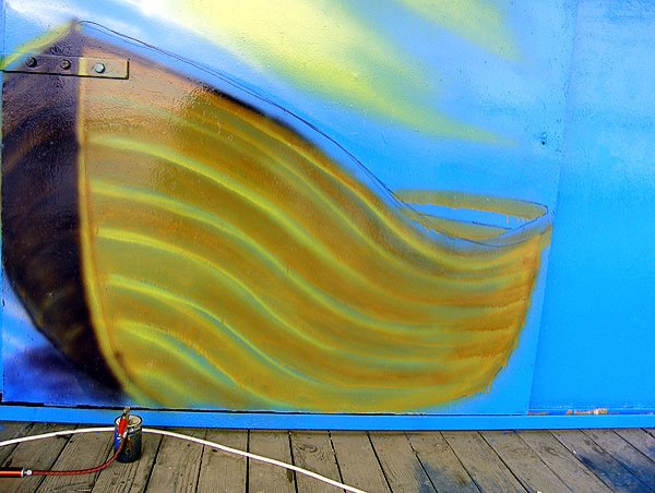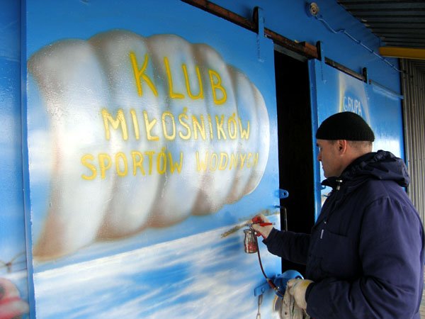 | Przedstawiamy kilka fotek z realizacji naszego ostatniego pomysłu. Pogoda nie pozwala na razie poszaleć na wodzie, co bardziej niespokojne duchy postanowiły więc pobawić się farbkami ... w końcu tam też jest woda :)) Ze względu na rozmach przedsięwzięcia, jego realizacja potrwa kilka dni. Będziemy na bieżąco przedstawiali postępy. | |