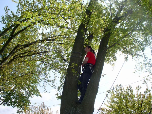 | Słotki rozciąga "małpi most", na którym można będzie sprawdzić swoje talenty wspinaczkowe. |