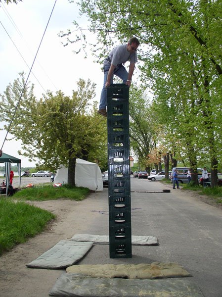 | Hary na wieży ze skrzynek. Mówił, że to dla sprawdzenia bezpieczeństwa. Tak naprawdę bał się dać plamę przy ludziach i zmusił Słotkiego do wspinaczki przed imprezą :))) |