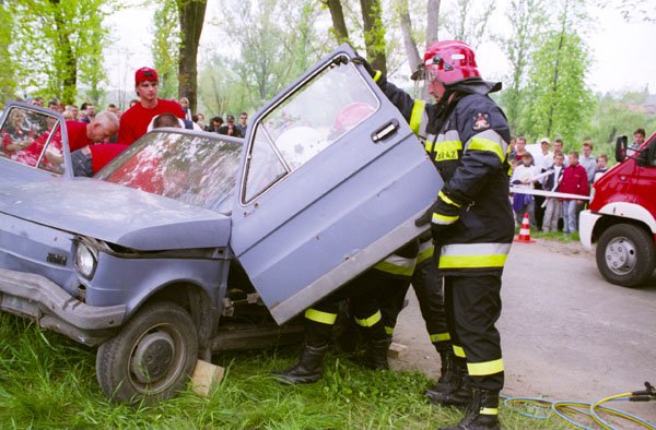 | ... ale nie tylko. Tutaj pokaz ratownictwa drogowego wspólnie ze strażakami Państwowej Straży Pożarnej w Sandomierzu. |