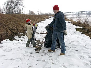 | W sobotę 18 marca 2006 spotkaliśmy się na Bulwarze Piłsudskiego, by pozbierać wszystko, co zaczął odkrywać topniejący śnieg. Trzeba przyznać, że jak na dość mało uczęszczaną okolicę miasta 'skarbów' było sporo. Pytanie, czy przyczyną tego jest niechlujstwo odwiedzających Bulwar, czy brak na nim koszy na śmieci. Wygląda na to, że dwa kontenery ustawione po drugiej stronie ulicy nie spełniają swojej roli. |