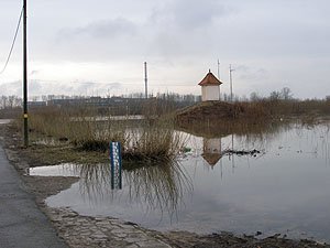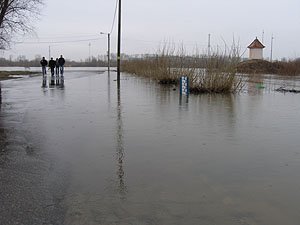 | Godz. 10.30. Woda dochodzi do jezdni, ale jej nie zalewa. | Godz. 10.30. Okrąglak stoi z dala od wody. |