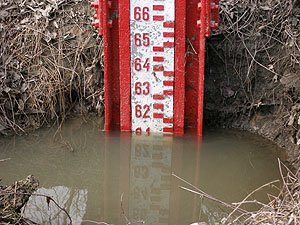 | Godz. 15.30. Wodowskaz zniknął pod wodą. | Godz. 15.30. Przerzucamy się na inny, stojący wyżej. |