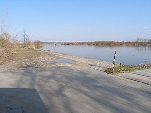 | Dotarliśmy do wodowskazu ... | Z brzegu woda wyglądała na zdecydowanie mniejszą ... |