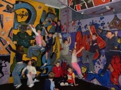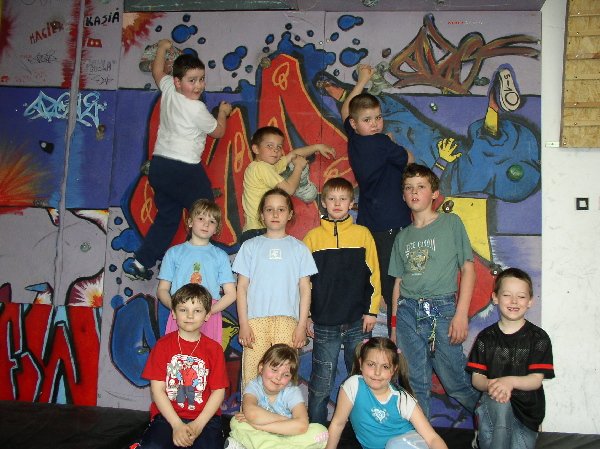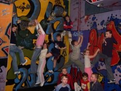 | Forma zajęć rekreacyjno-wychowawczych, która skupia około 40 osób. Pracuje w trzech grupach zaawansowania. Jest to modny sposób rekreacji ale i znakomity sposób na działania wychowawczo-prewencyjne dla osób ze środowisk niesfornych. Klub skupia fascynatów wspinaczki od 6 do 30 lat, poza systematycznymi zajęciami w obiekcie organizowane są wyjazdy wspinaczkowe w plener oraz kilkudniowe biwaki w pobliskim kamieniołomie. W ramach klubu prowadzone są zajęcia dla osób niepełnosprawnych z Ośrodka Terapeutycznego 'Radość Życia'. Planowany jest rozwój w kierunku działalności sportowej i udział w zawodach. |  |