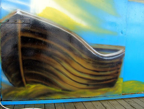 | Przedstawiamy kilka fotek z realizacji naszego ostatniego pomysłu. Pogoda nie pozwala na razie poszaleć na wodzie, co bardziej niespokojne duchy postanowiły więc pobawić się farbkami ... w końcu tam też jest woda :)) Ze względu na rozmach przedsięwzięcia, jego realizacja potrwa kilka dni. Będziemy na bieżąco przedstawiali postępy. | |