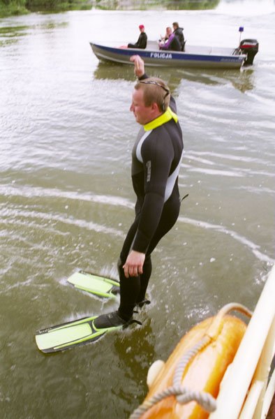 | Przygotowania do skoku z łodzi. |