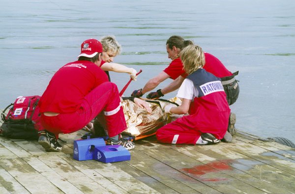 | Udzielając na lądzie pomocy poszkodowanym wyciągniętym z wody ... |