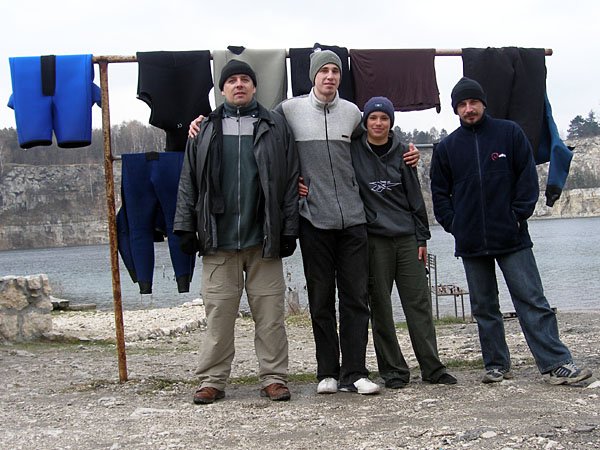 | Pomimo, że zima skończyła się, wiosna na razie nie rozpieszcza nas słońcem i pogodą. Pomimo to postanowiliśmy w Lany Poniedziałek zanurkować w zalanym kamieniołomie Zakrzówek w Krakowie. Jak obchodzić lejka to na całego :) |